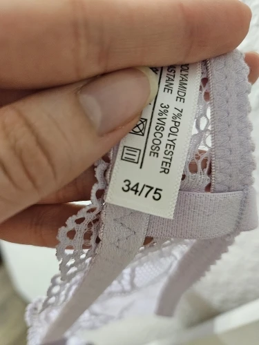 The lace is sewn a little unevenly, creating the effect of a crooked chest. Size 75B fits quite tightly under the bust, but the cup size seems to me to be more suitable for larger breasts.