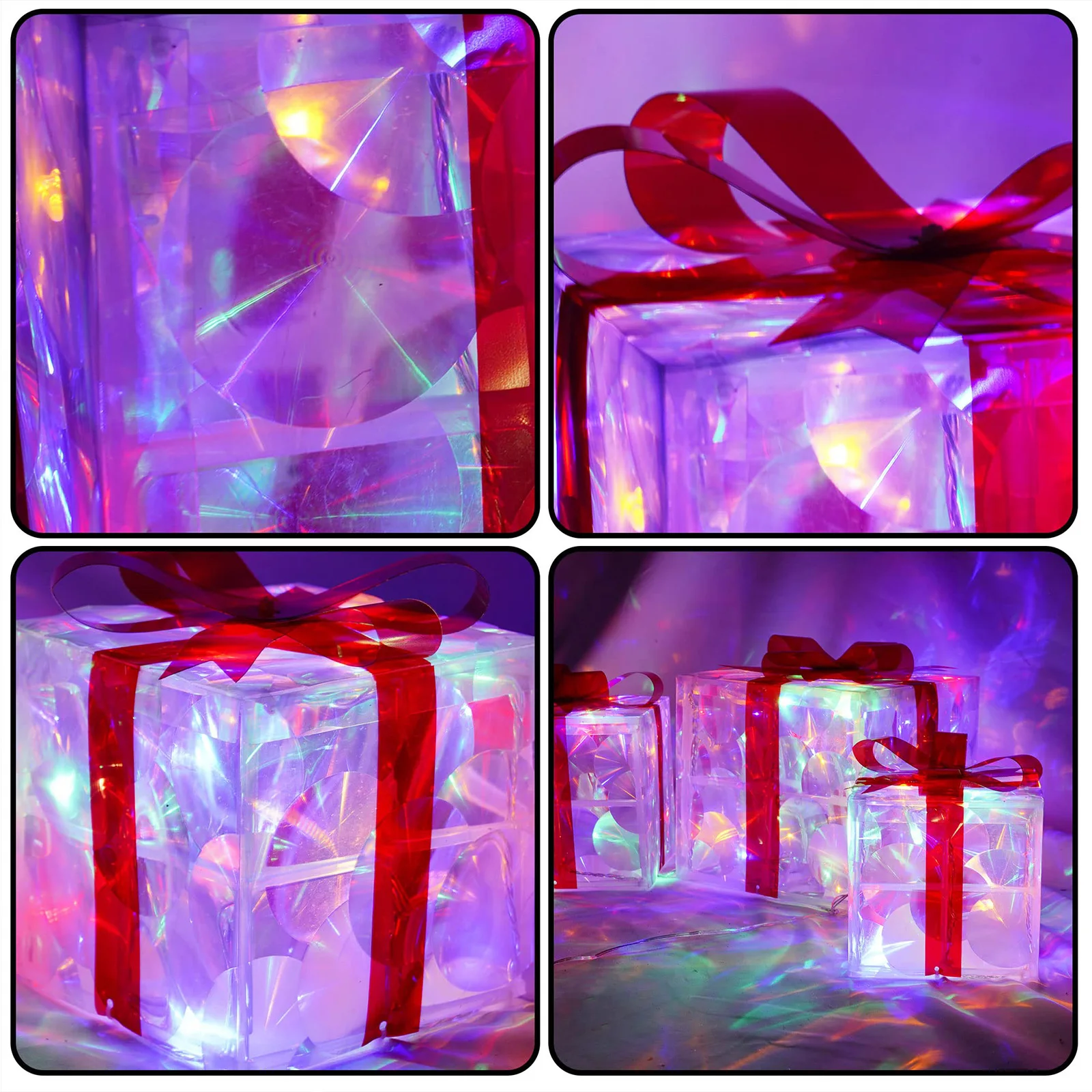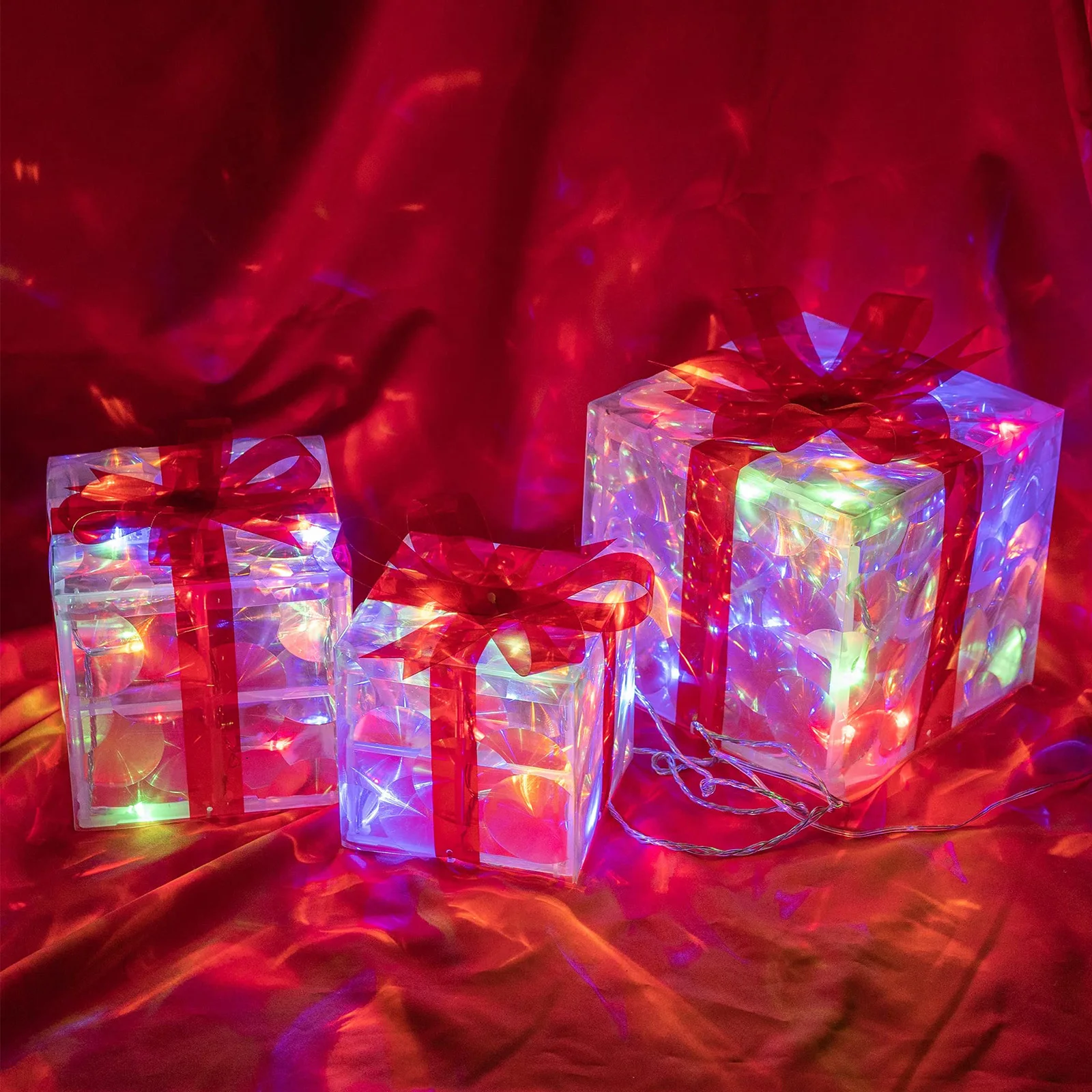 【Layered Festive Display】Includes three sizes of pre-lit gift boxes with coordinated red/green/gold bows for dimensional holiday staging. Effortlessly create eye-catching arrangements indoors or outdoors.