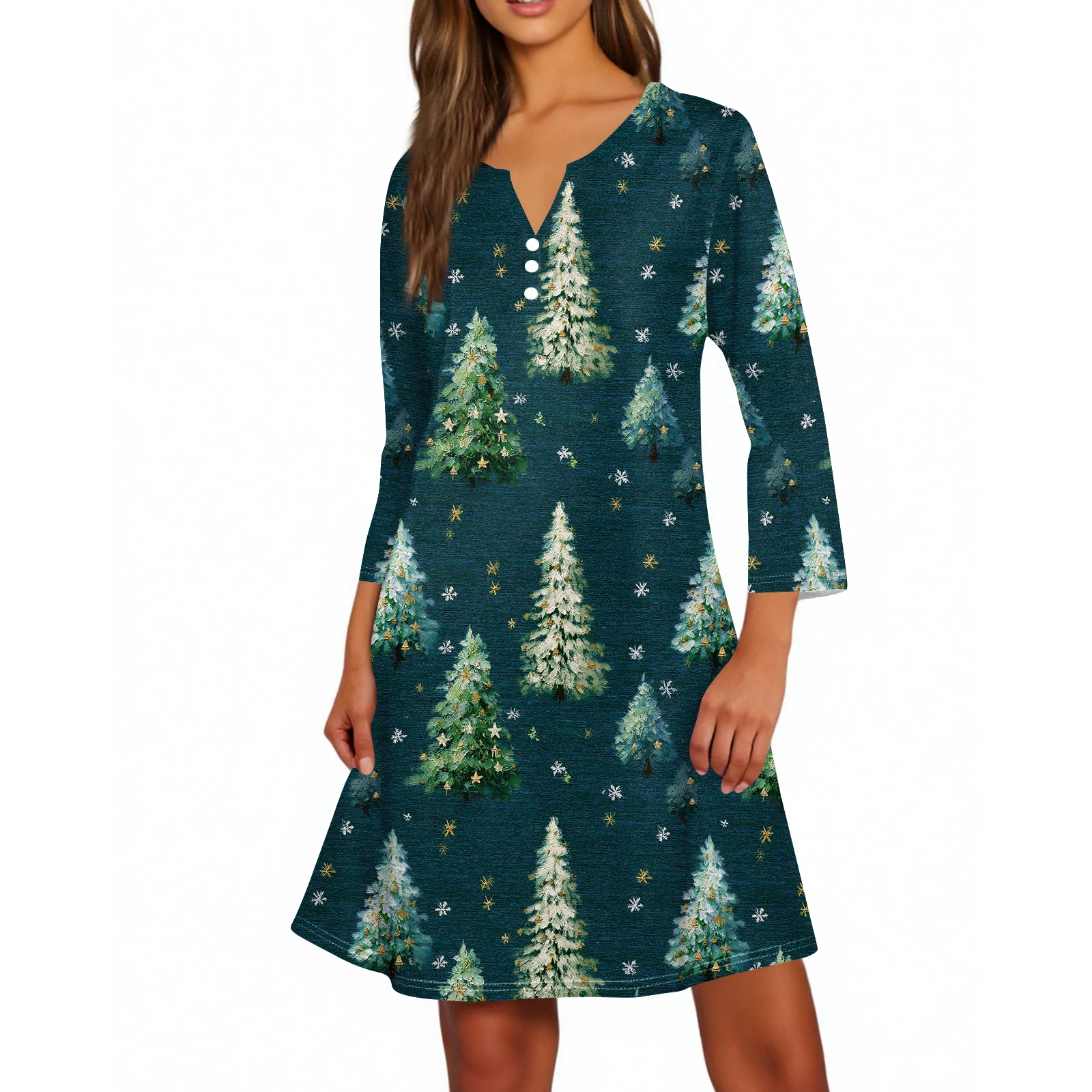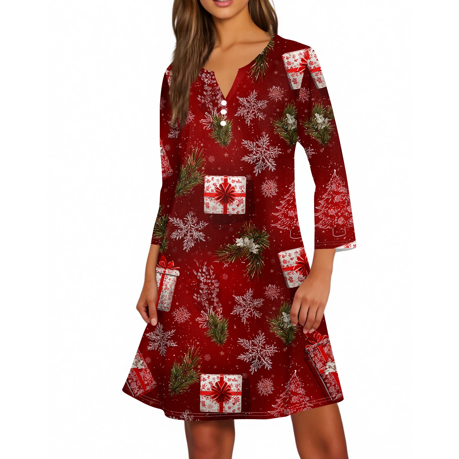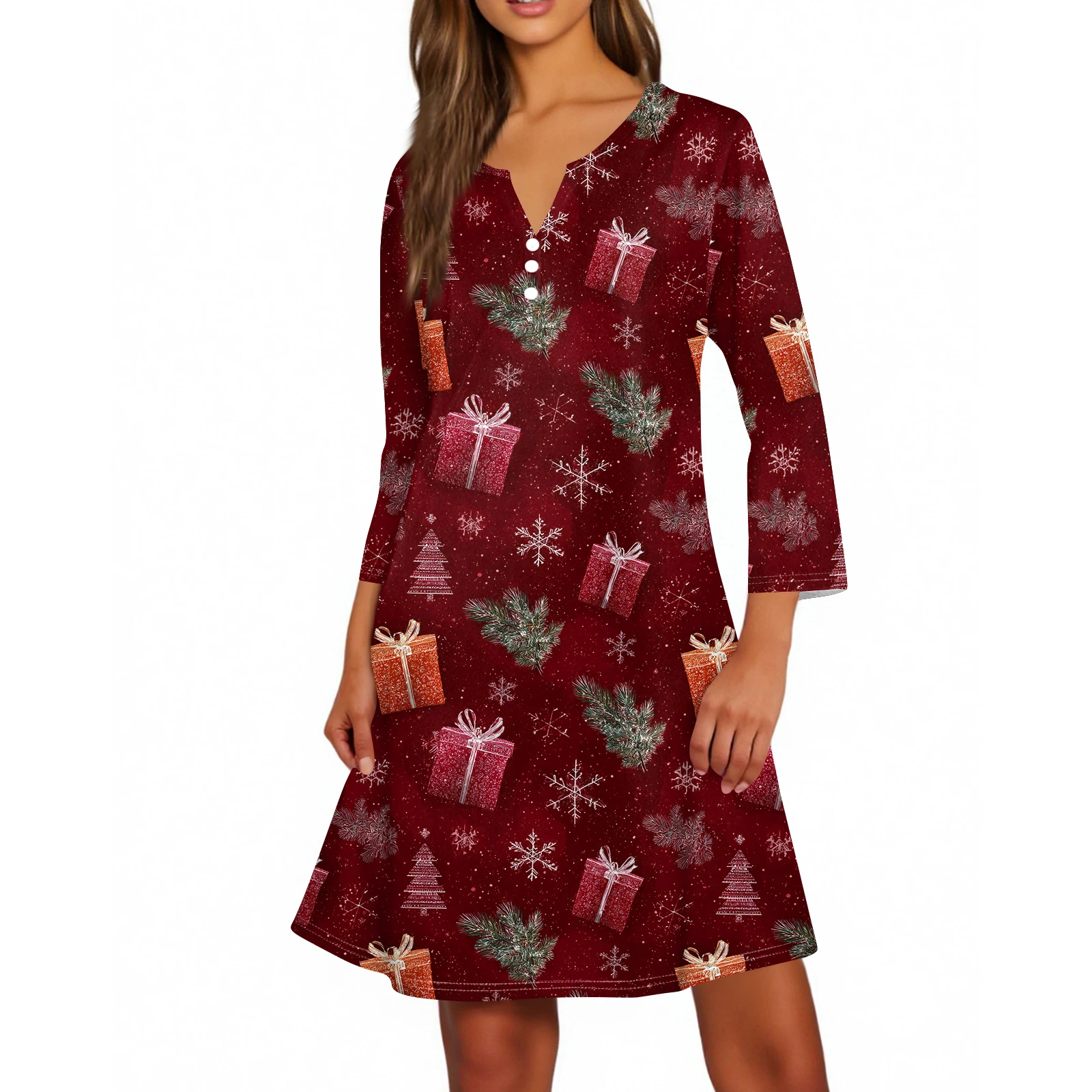 Perfect for Christmas parties, family gatherings, holiday dinners, school events, and festive photos, this dress combines warmth, style, and seasonal spirit. The vibrant Christmas print makes it a stand-out piece for the holidays, while the relaxed yet flattering fit suits all body shapes.