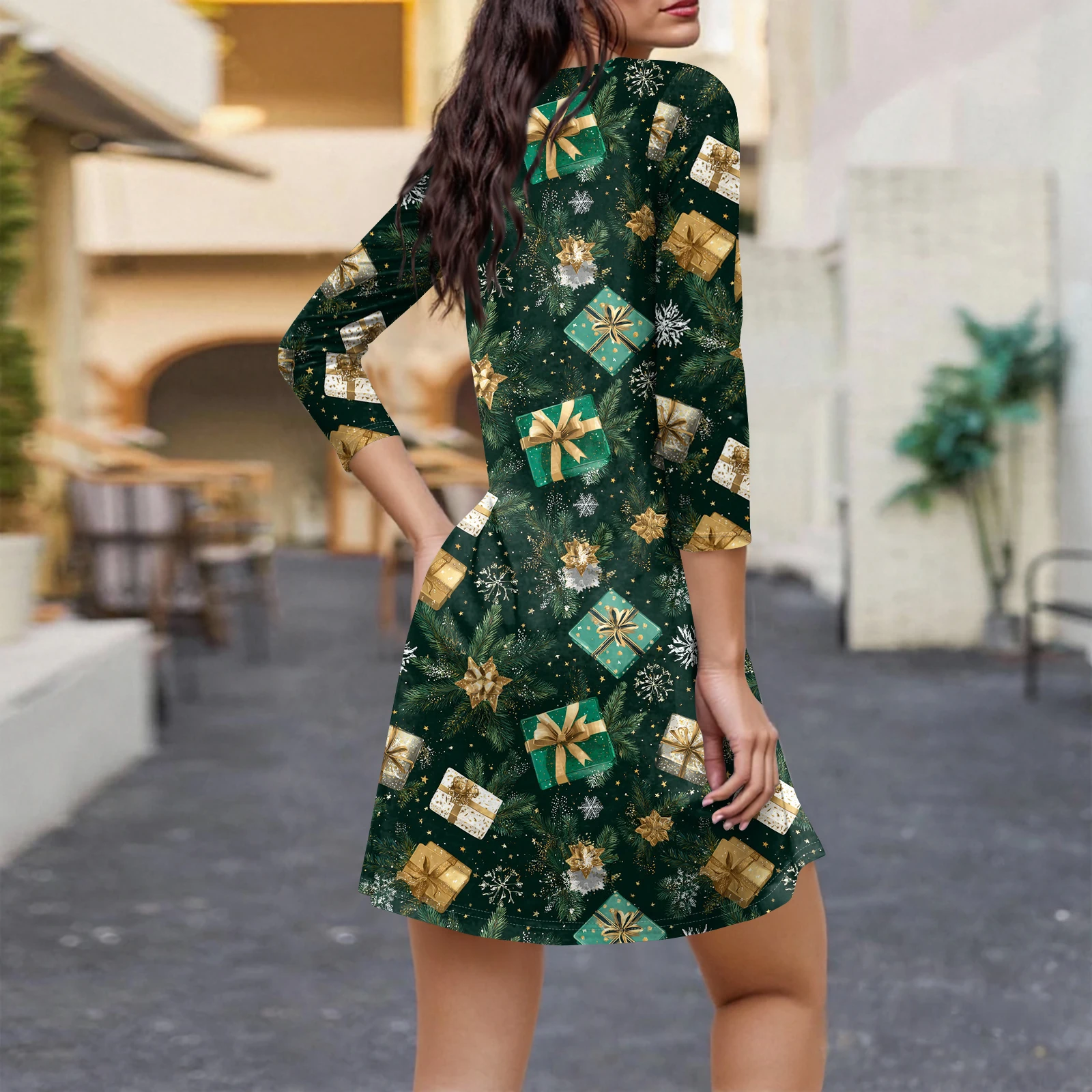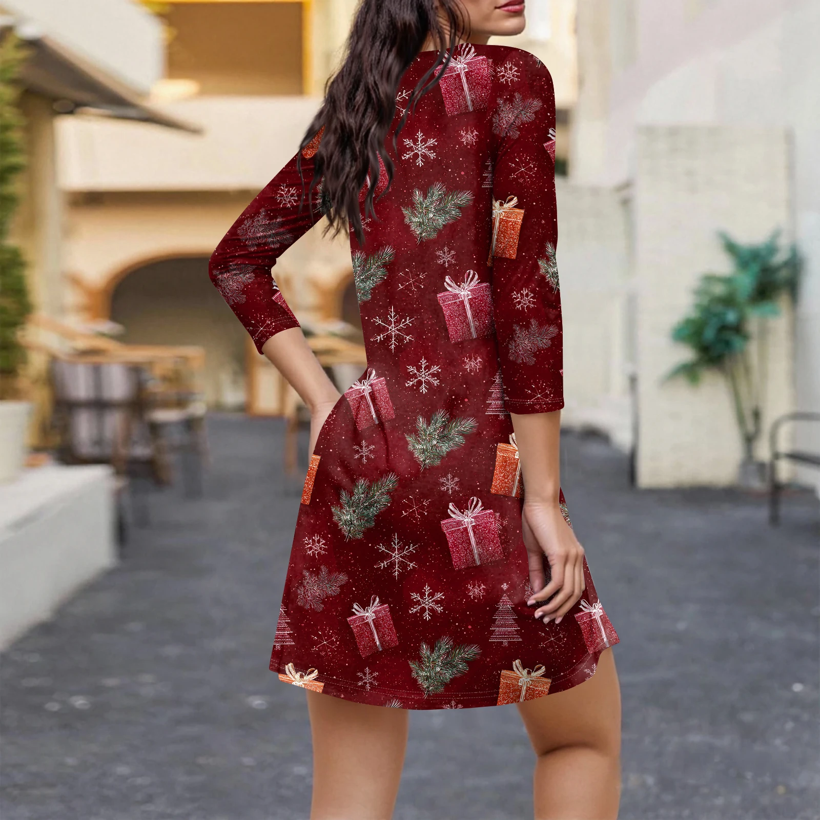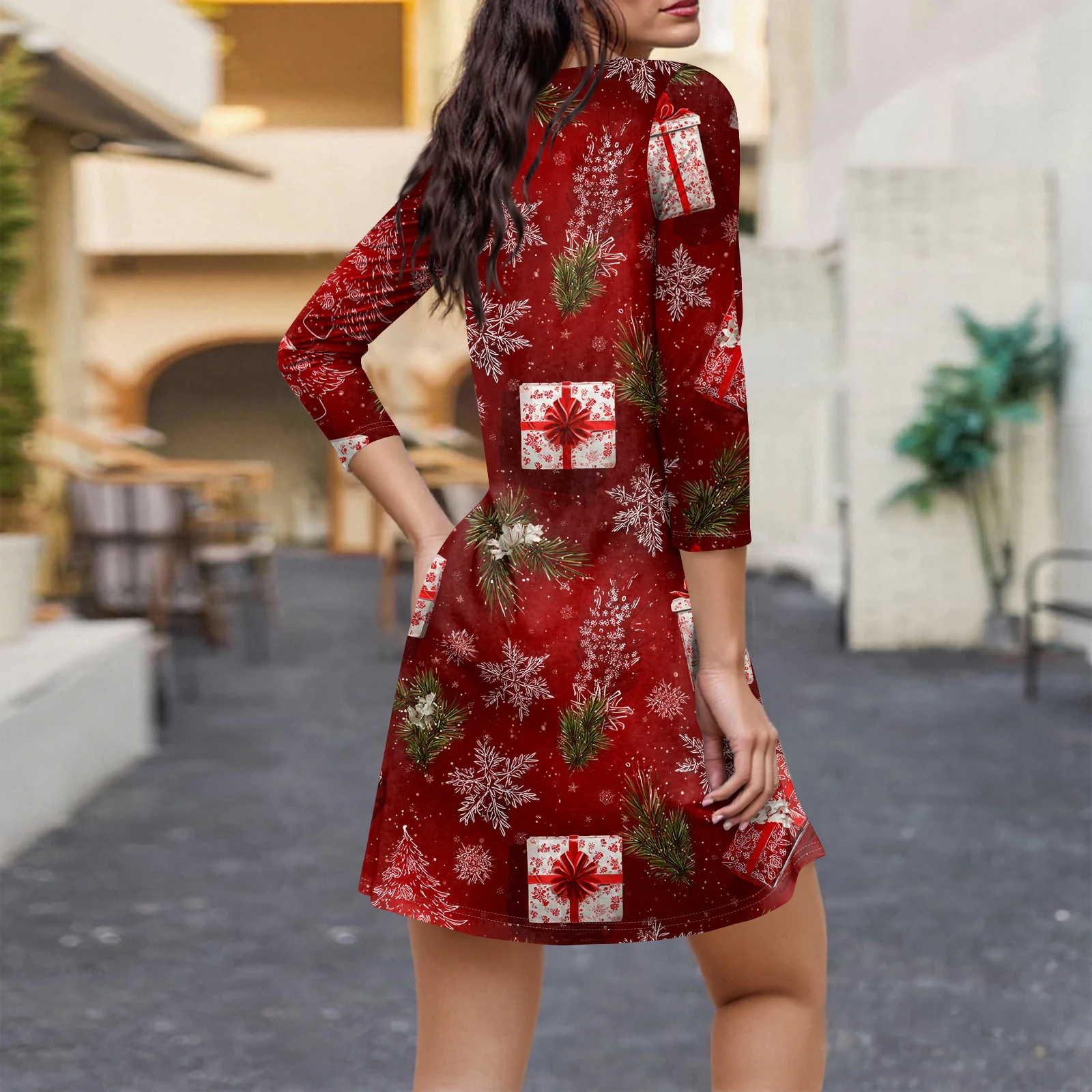 Perfect for Christmas parties, family gatherings, holiday dinners, school events, and festive photos, this dress combines warmth, style, and seasonal spirit. The vibrant Christmas print makes it a stand-out piece for the holidays, while the relaxed yet flattering fit suits all body shapes.