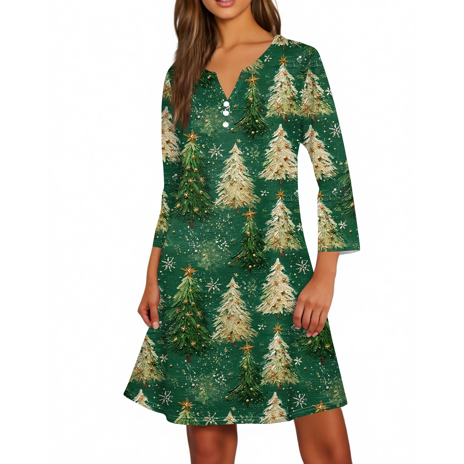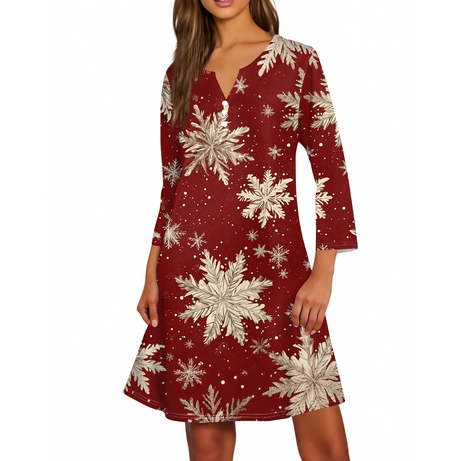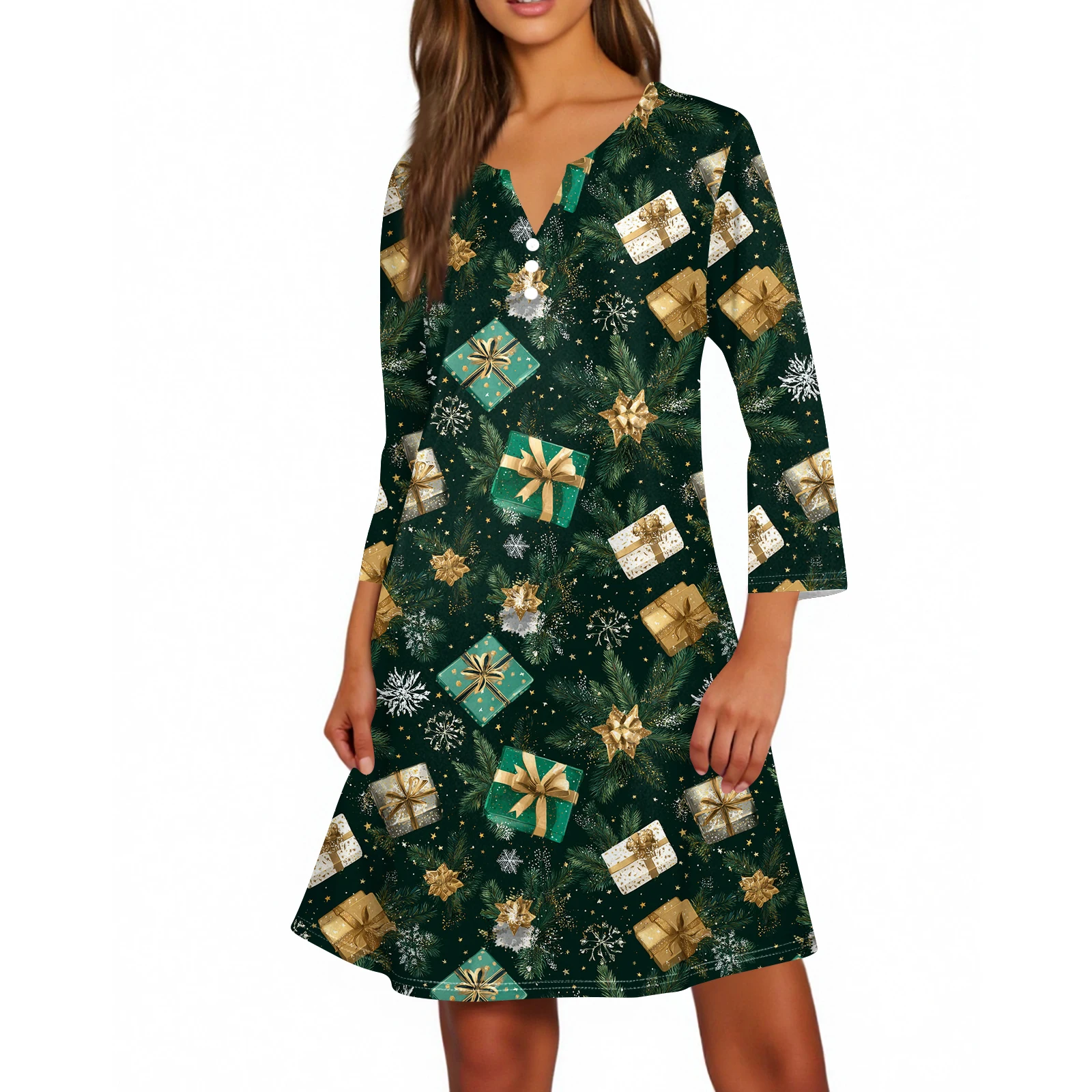 Get holiday-ready with our Women’s Christmas Printed V-Neck Button Dress, designed to bring festive charm and effortless comfort to your winter wardrobe. This stylish Christmas dress features a flattering V-neckline, chic button details, and elegant seven-part cuff sleeves that add a modern seasonal touch. The soft, breathable fabric ensures all-day comfort, while the convenient side pockets make it both practical and fashionable.