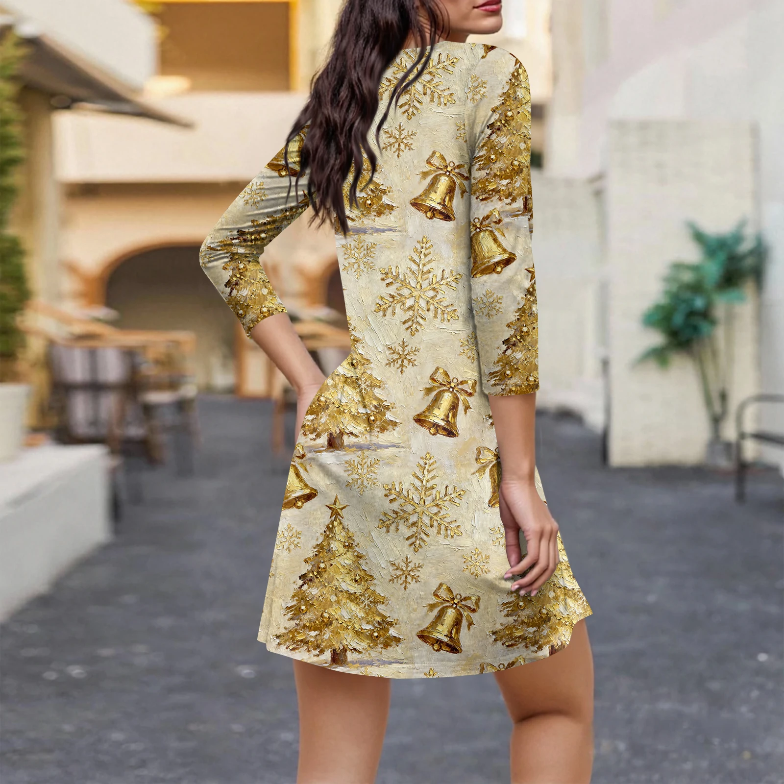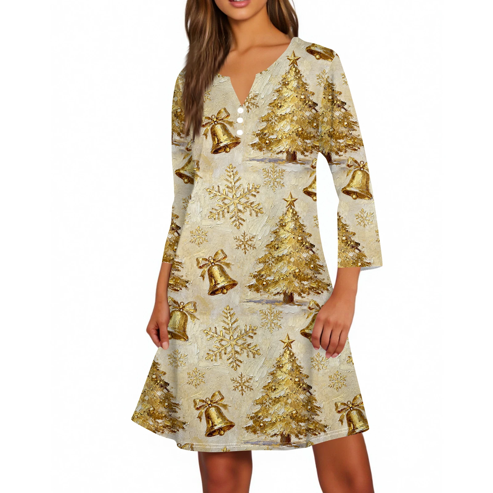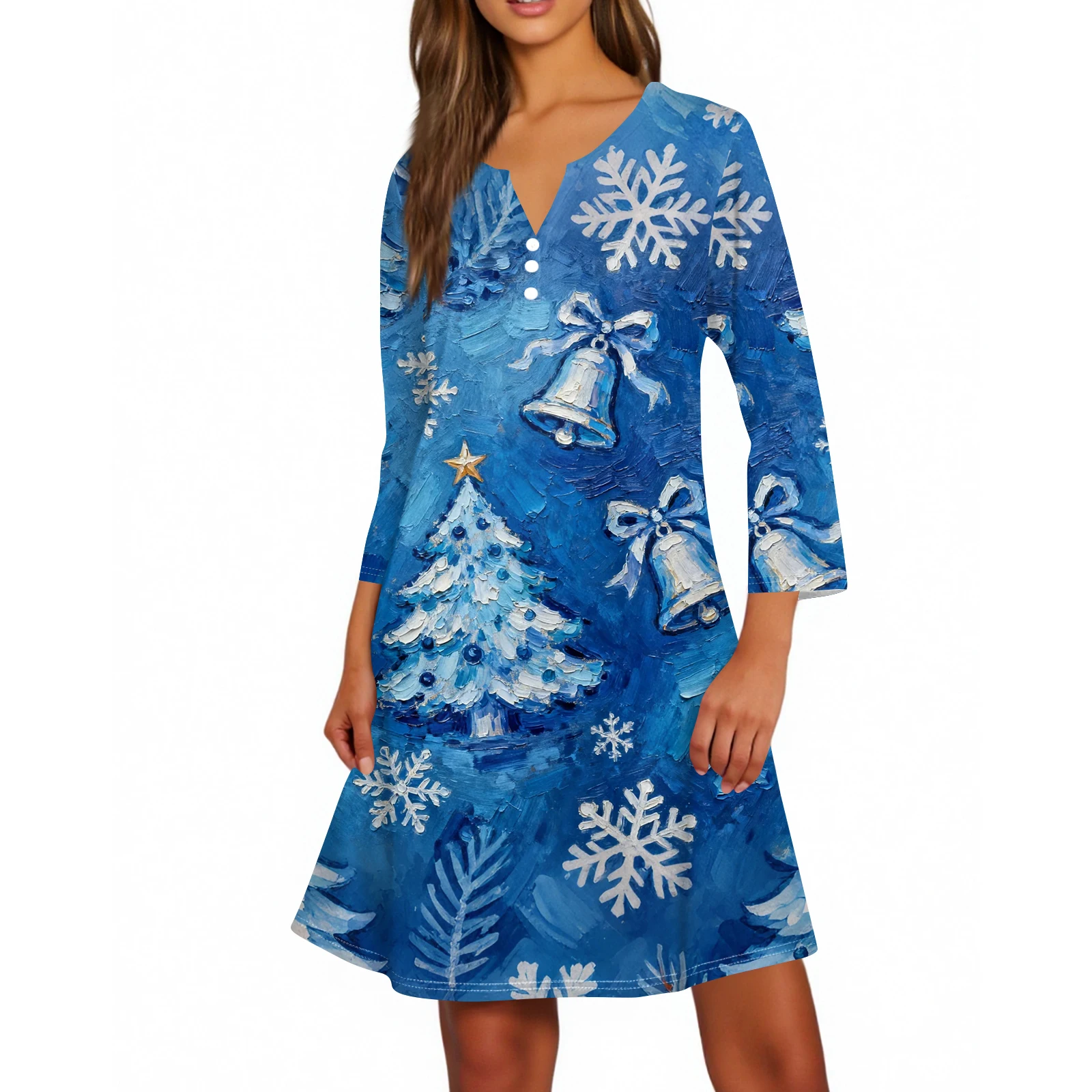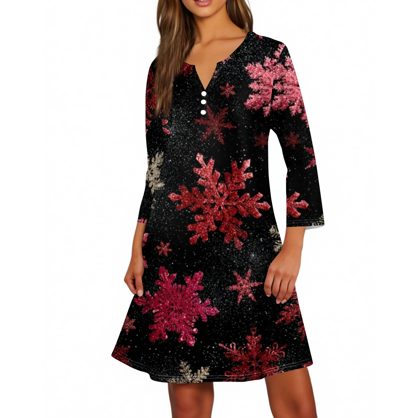 Get holiday-ready with our Women’s Christmas Printed V-Neck Button Dress, designed to bring festive charm and effortless comfort to your winter wardrobe. This stylish Christmas dress features a flattering V-neckline, chic button details, and elegant seven-part cuff sleeves that add a modern seasonal touch. The soft, breathable fabric ensures all-day comfort, while the convenient side pockets make it both practical and fashionable.